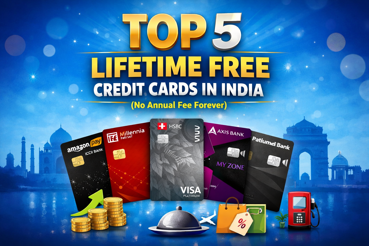 This article explains the top 5 lifetime free credit cards available in India that come with zero joining and annual fees. It highlights their key benefits, cashback offers, and reward features in simple language, helping beginners and existing users choose the right credit card without worrying about yearly charges.